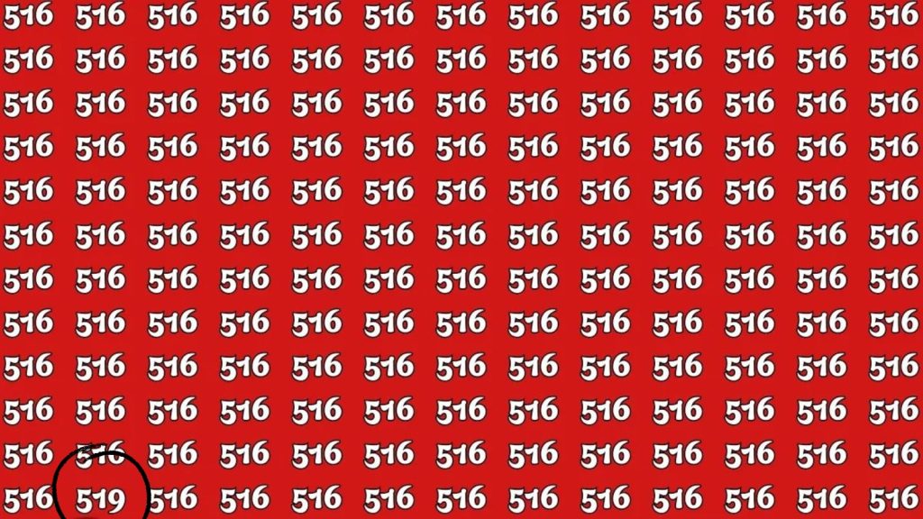 Hidden somewhere among the identical-looking 516s is the number 519. The difference is subtle, involving just one digit. Most people scan the image multiple times before realizing they missed it entirely, even when it sits directly in their line of sight.